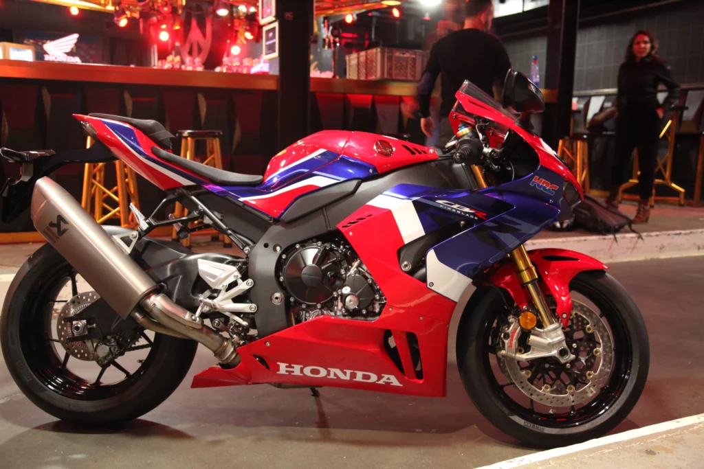 Honda reste Honda et c’est pour ça qu’on les aiment ! malgré toutes les innovations et améliorations apportées à sa lame de feu, on retrouve une ergonomie typique à la marque et qui permettra à tous de pouvoir profiter de cette machine avec un confort acceptable pour une Superbike. Les poignets ne sont pas placés trop bas et le réservoir tient bien les jambes qui ne sont d’ailleurs pas tant repliées. Après quelques instants installé à son guidon, je me vois déjà traverser le Jura à ses cotés ! Niveau pratique, les crises de nerfs en arrivant devant votre belle avec 18 couches de vêtements pour se rendre compte que la clé du bonheur se trouve a quelques centimètres sous le tissu ne sera qu’un mauvais souvenir grâce au démarrage « Smart Key’s » !