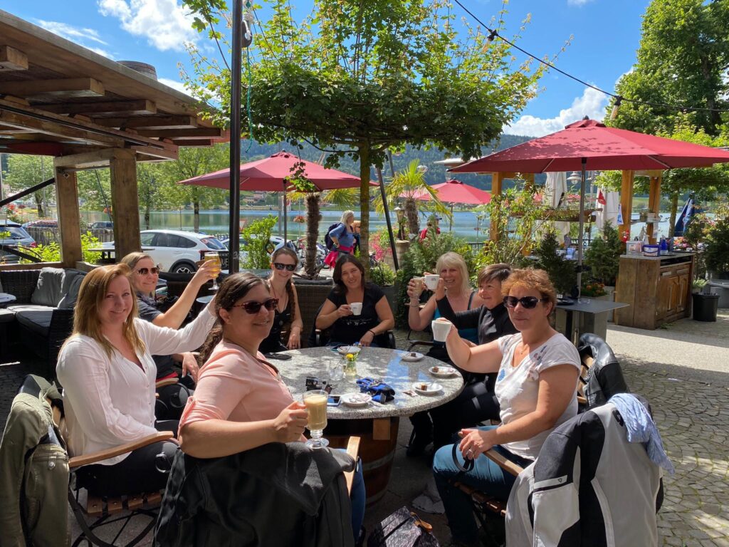 Débutée par un départ à 9h avec les cinq participantes genevoises, elle s’est poursuivie par un rendez-vous à Vich avec les trois participantes vaudoises à 9h45. À 10h, nous étions au complet et partions pour 150km en direction d’Estavayer-le-Lac. Entre deux, que du plaisir au fil des petites routes de campagne vaudoise, du col du Marchairuz et du côté nord-ouest du lac de Joux. Lors d’un premier arrêt au Pont agrémenté de rafraichissements, on approfondit les nouvelles rencontres que cette sortie nous offre, puis on repart. Après un passage par Orbe puis Yverdon-les-Bains, nous longeons le lac de Neuchâtel et nous voilà arrivées à Estavayer-le-Lac pour 13h.